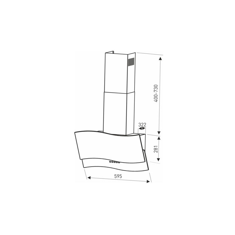 Sterowanie przyciskami, przeciwtłuszczowy filtr aluminiowy 5-warstwowy, odprowadzenie fi 150 mm, elastyczna rura 2m.